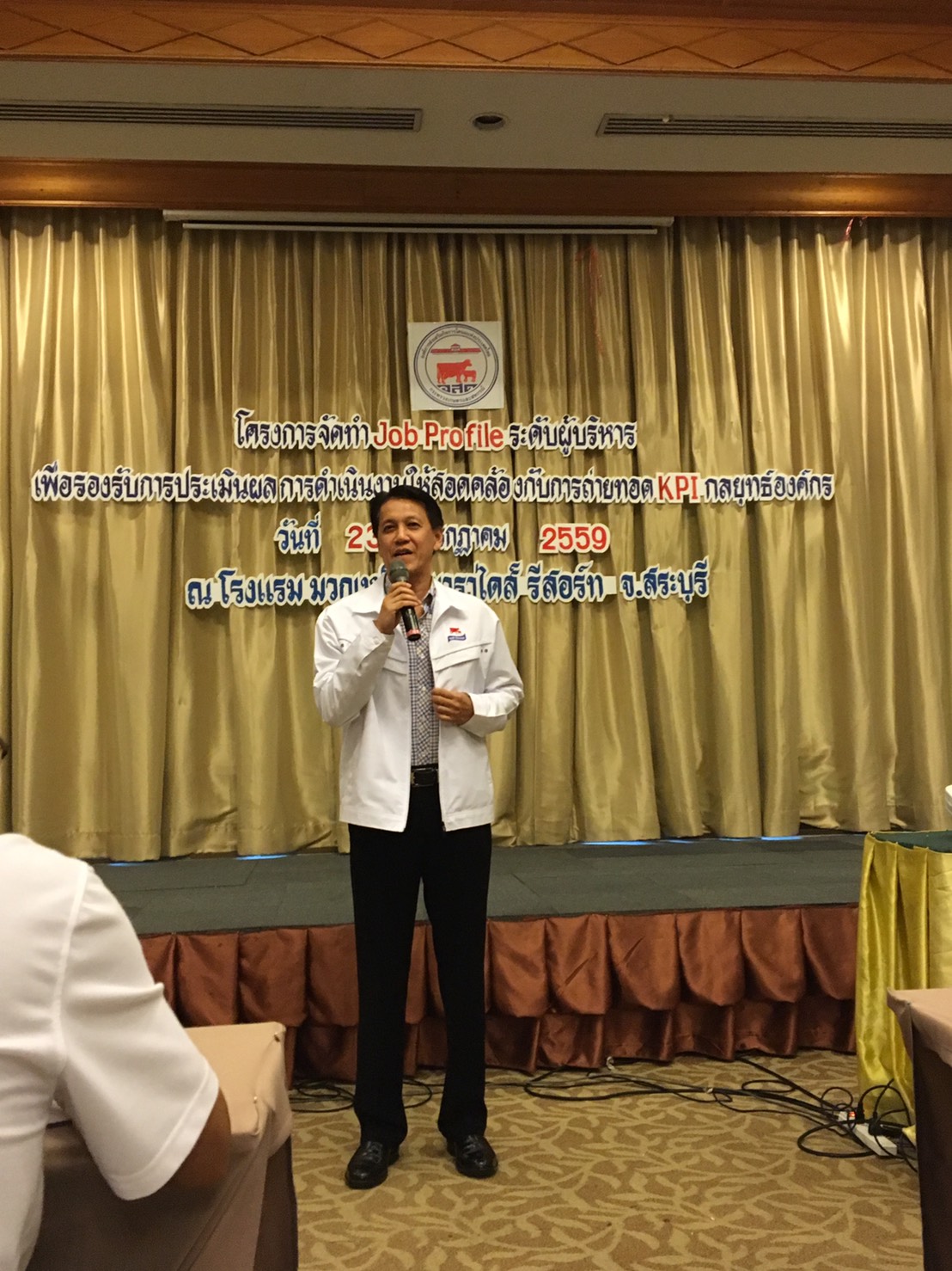 วันที่ 22 กรกฎาคม 2559 ดร.ณรงค์ฤทธิ์ วงศ์สุวรรณ ผู้อำนวยการ องค์การส่งเสริมกิจการโคนมแห่งประเทศไทย (อ.ส.ค.) ให้เกียรติเป็นประธานเปิดการสัมมนา การจัดทำ Job profile ผู้บริหาร ระดับ 6 ณ ห้องประชุมจามจุรี โรงแรมมวกเหล็กพาราไดส์ รีสอร์ท ทั้งนี้เพื่อรองรับการประเมินผลการดำเนินงานให้สอดคล้องกับการถ่ายทอด KPI กลยุทธ์องค์กรตามแผนวิสาหกิจ ประจำปี 2560-2564