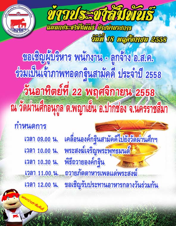 อ.ส.ค.จัดกิจกรรม “ธรรมะในฟาร์ม ครั้งที่ 7” และกิจกรรม“รณรงค์ต่อต้านการทุจริตและคอร์รัปชั่นภายในองค์ก...