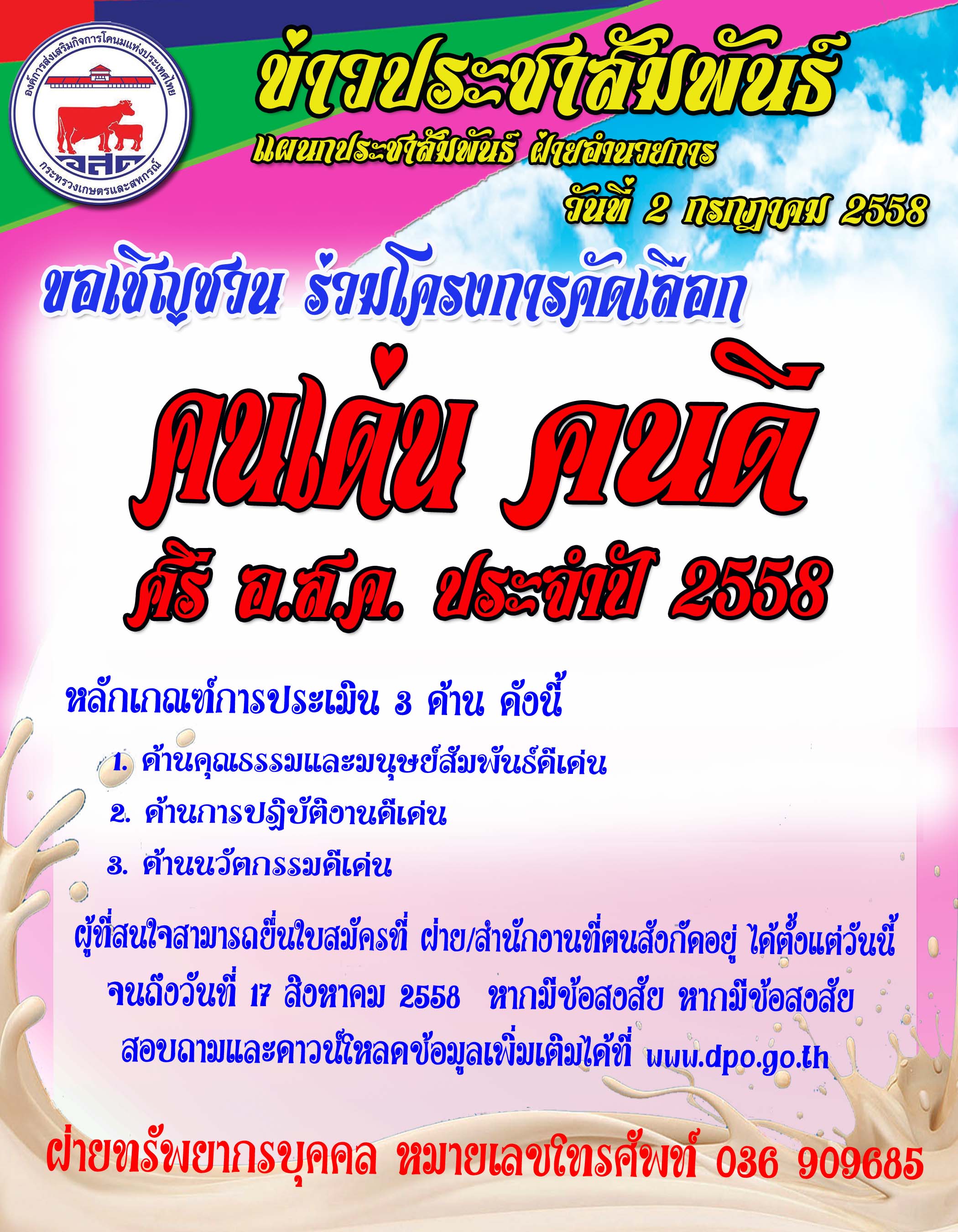 อ.ส.ค.จัดทำโครงการคัดเลือกคนเด่นคนดีศรี อ.ส.ค. ประจำปี 2558
