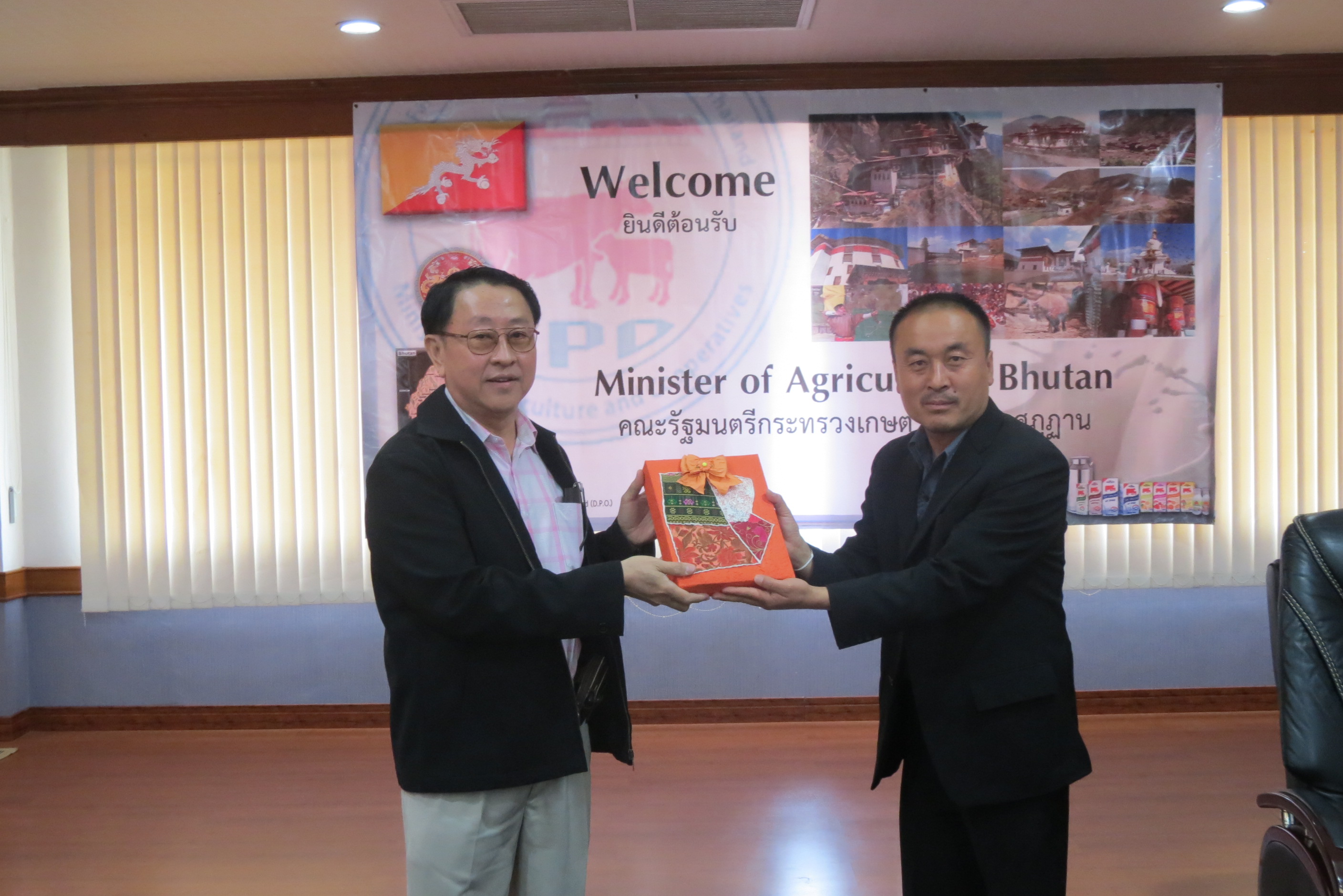 วันที่ 2 กุมภาพันธ์ 2559 คณะดูงานจากประเทศภูฏาน นำโดย Dr. Tashi Samdup อธิบดีกรมปศุสัตว์ประเทศภูฎาน และ Mr. Naiten Wangchuk เลขานุการกรมปศุสัตว์ประเทศภูฏาน พร้อมคณะ เข้าศึกษาดูงานด้านการผลิตนม ที่โรงงานผลิตภัณฑ์นม อ.ส.ค. สำนักงานภาคตะวันออกเฉียงเหนือ โดยมีคณะผู้บริหารและเจ้าหน้าที่ อ.ส.ค. ให้การต้อนรับและนำเยี่ยมชมโรงงาน