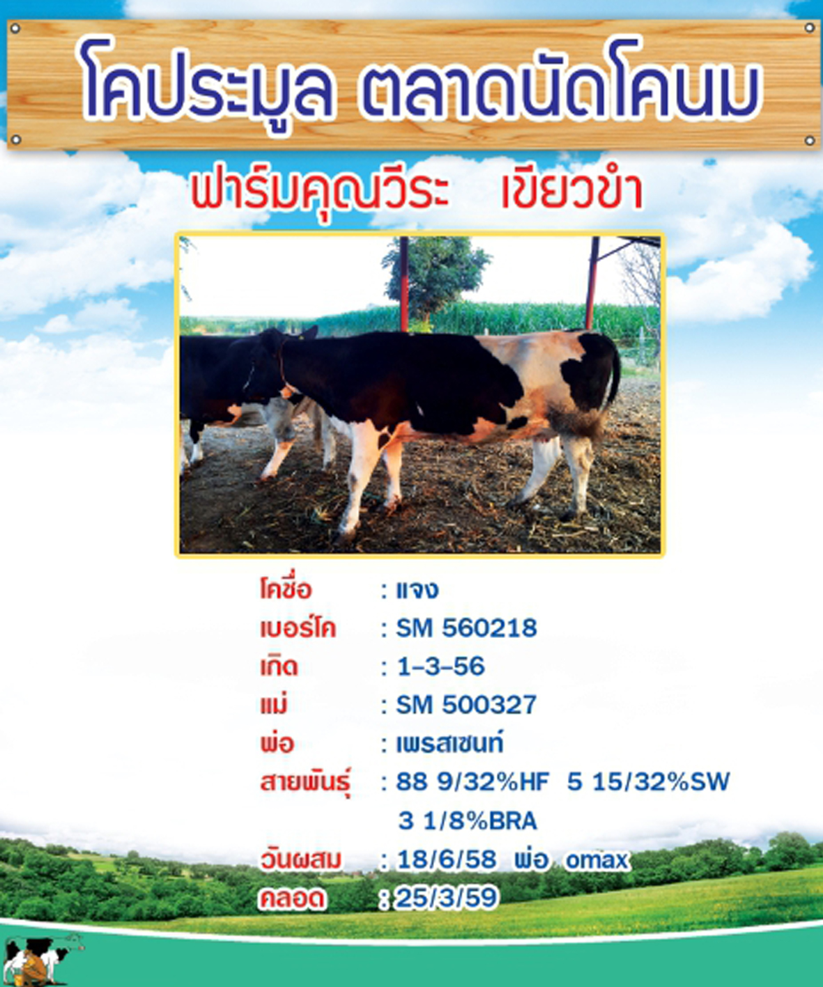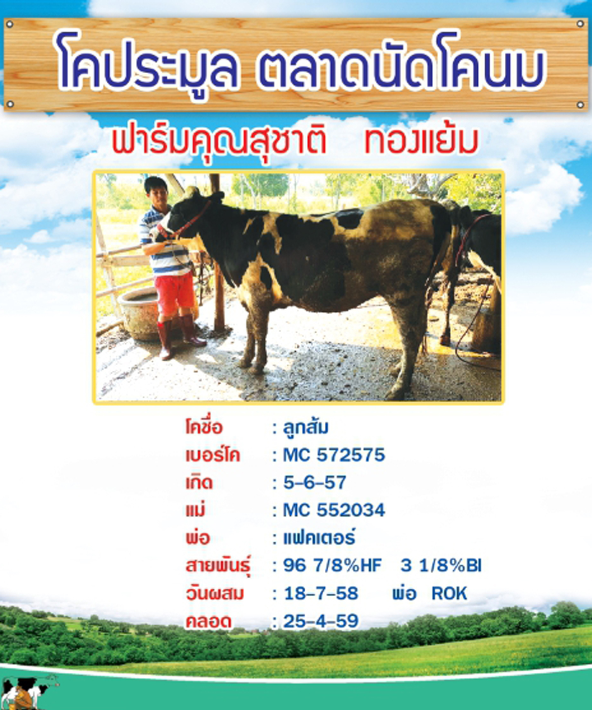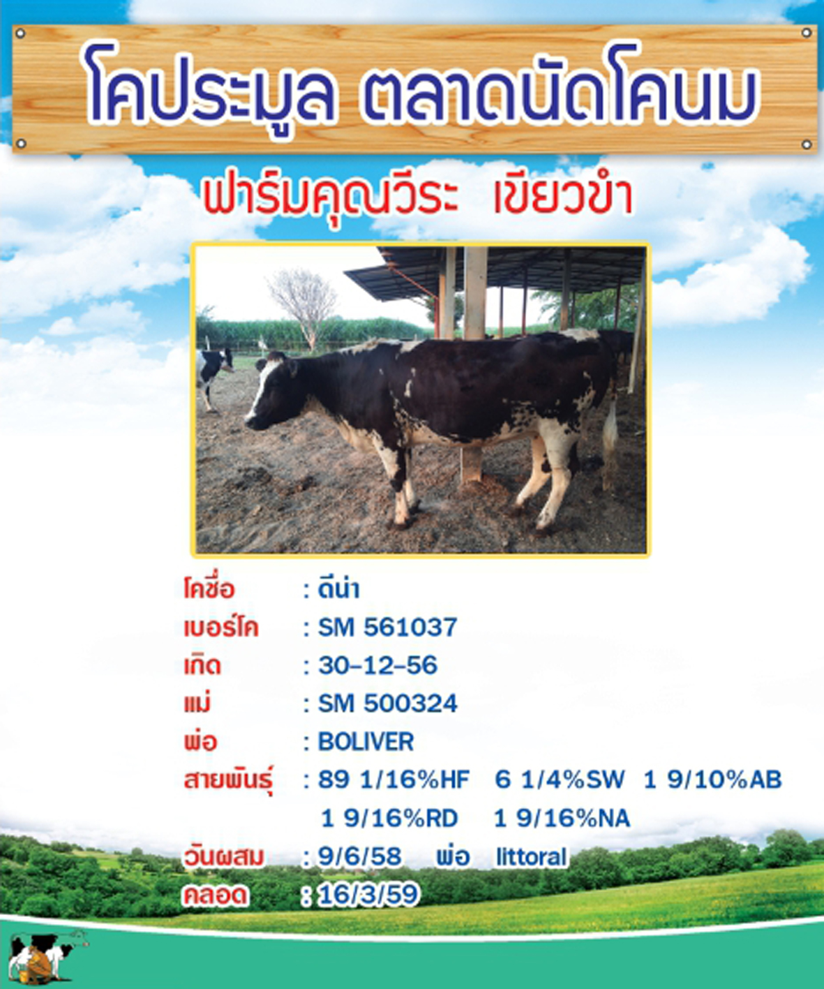 ผลการประมูลโคนมประเภทโคสาวท้องใกล้คลอดของเกษตรกรที่ส่งโคเข้าประกวด ในปี 2559 จำนวน 7 ตัว เมื่อวันที่ 31 มกราคม 2559