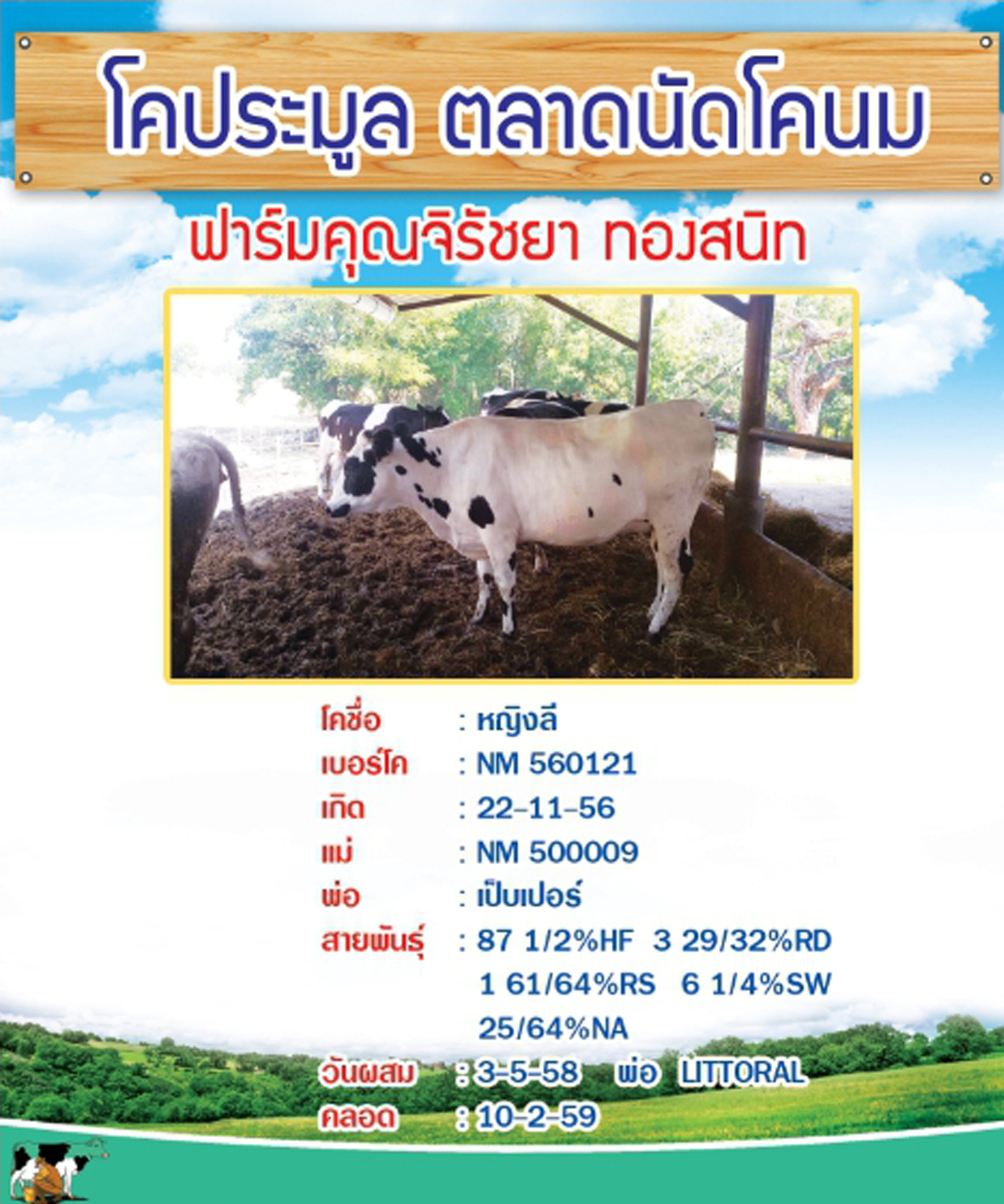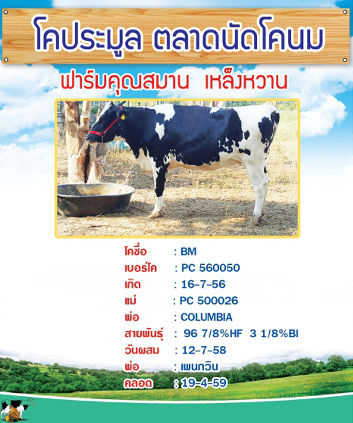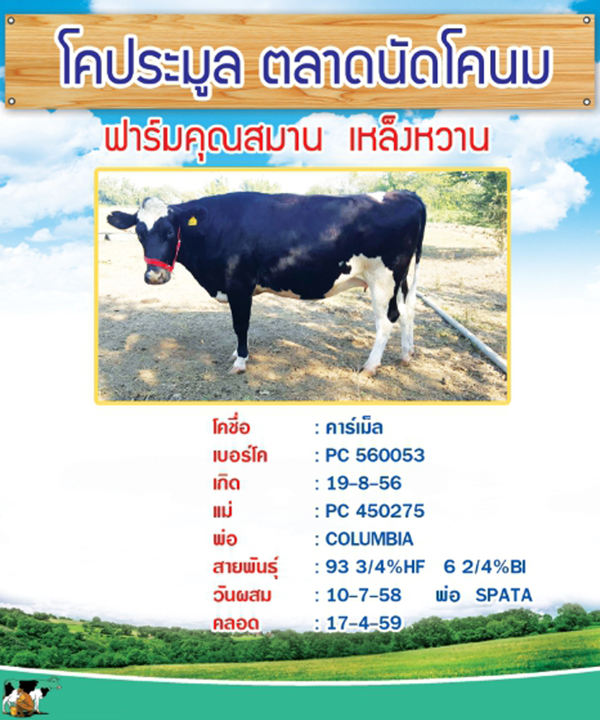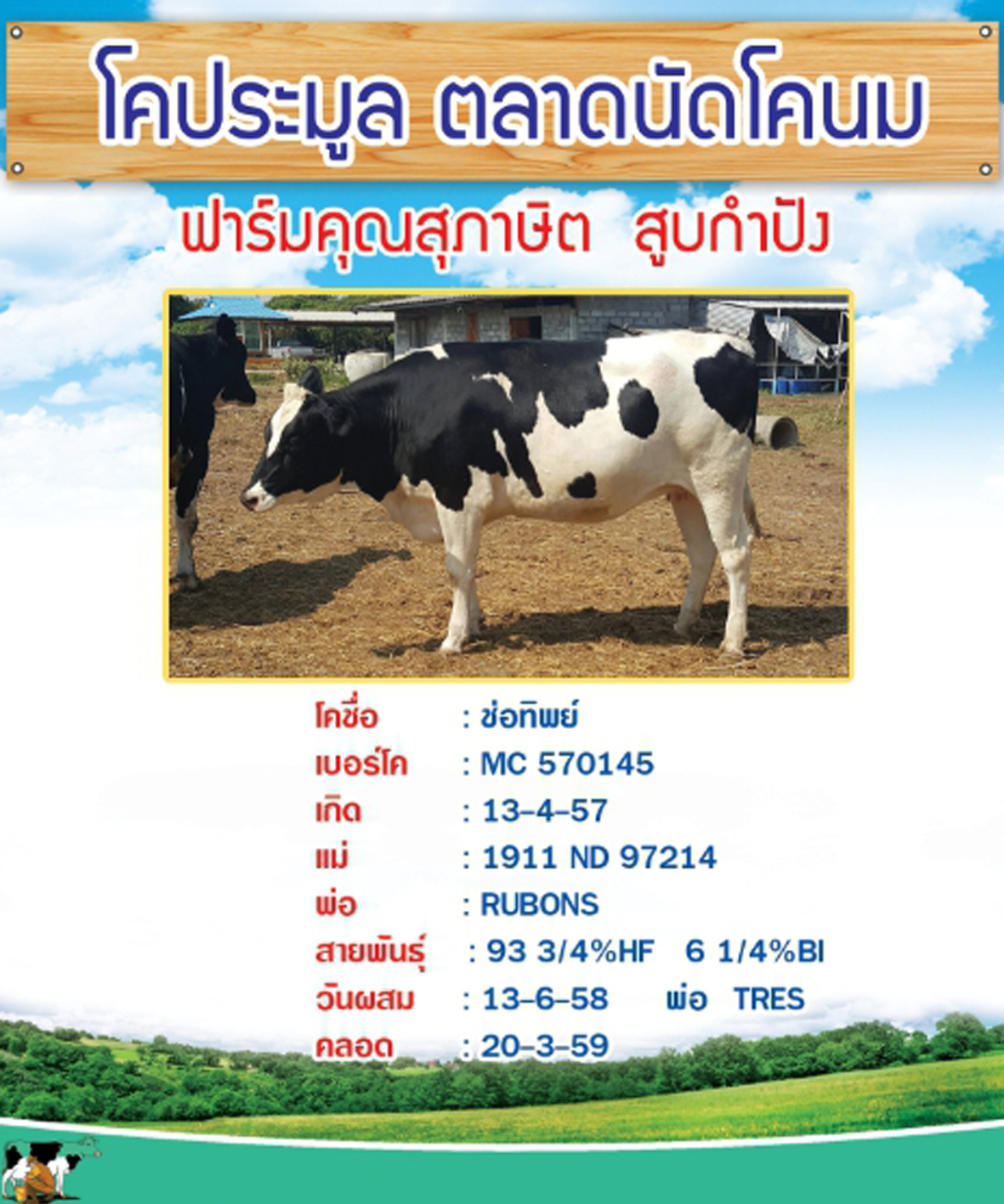 ผลการประมูลโคนมประเภทโคสาวท้องใกล้คลอดของเกษตรกรที่ส่งโคเข้าประกวด ในปี 2559 จำนวน 7 ตัว เมื่อวันที่ 31 มกราคม 2559