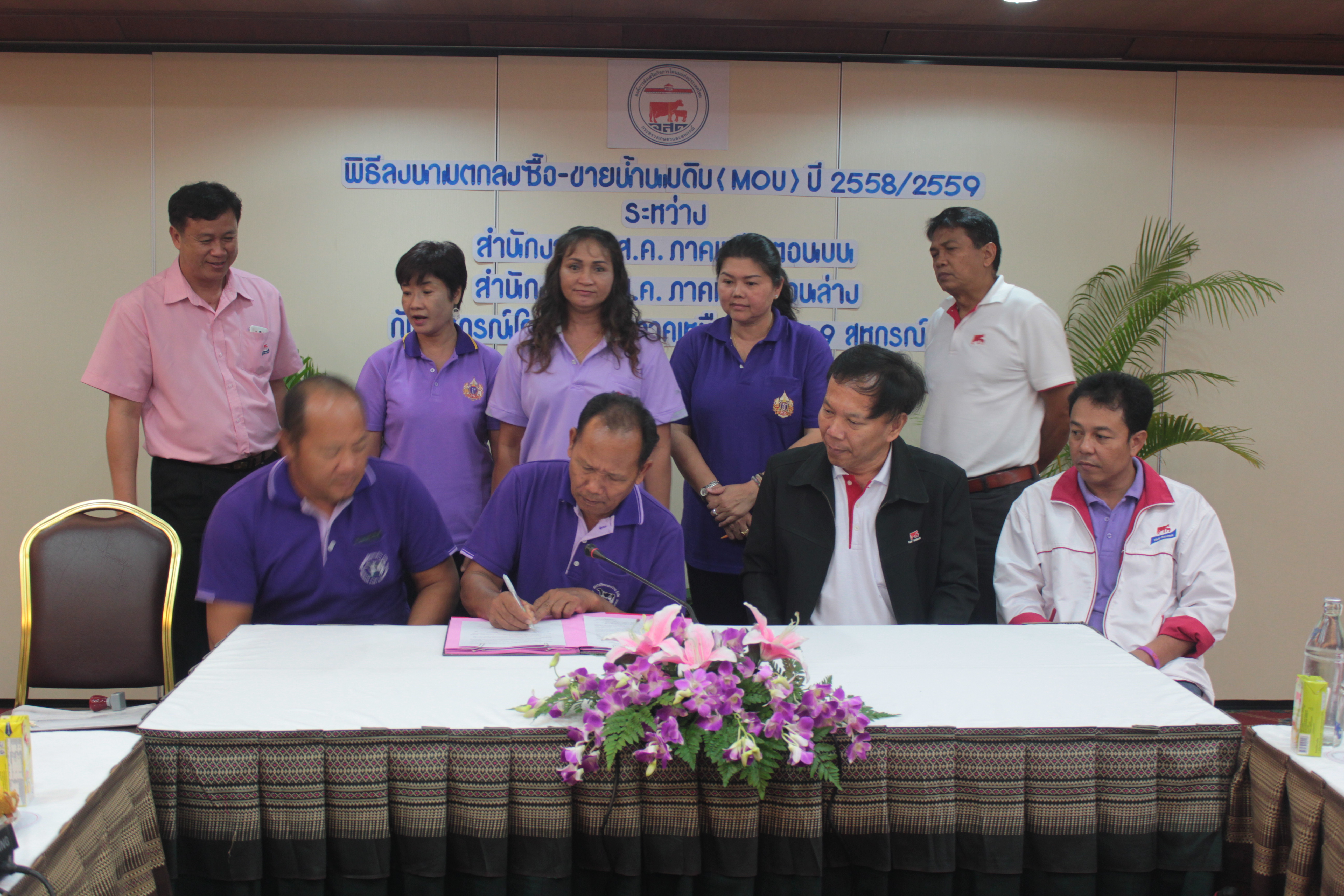 นายวินิจ วงศ์วโรฬาร หัวหน้าสำนักงาน อ.ส.ค. ภาคเหนือตอนบนร่วมพิธีลงนาม MOU ร่วมกับ กลุ่มสหกรณ์โคนมในเขตภาคเหนือตอนบน จำนวน 9 สหกรณ์ เมื่อวันที่ 12 พฤษภาคม 2558 ณ โรงเเรมเชียงใหม่ออคิด