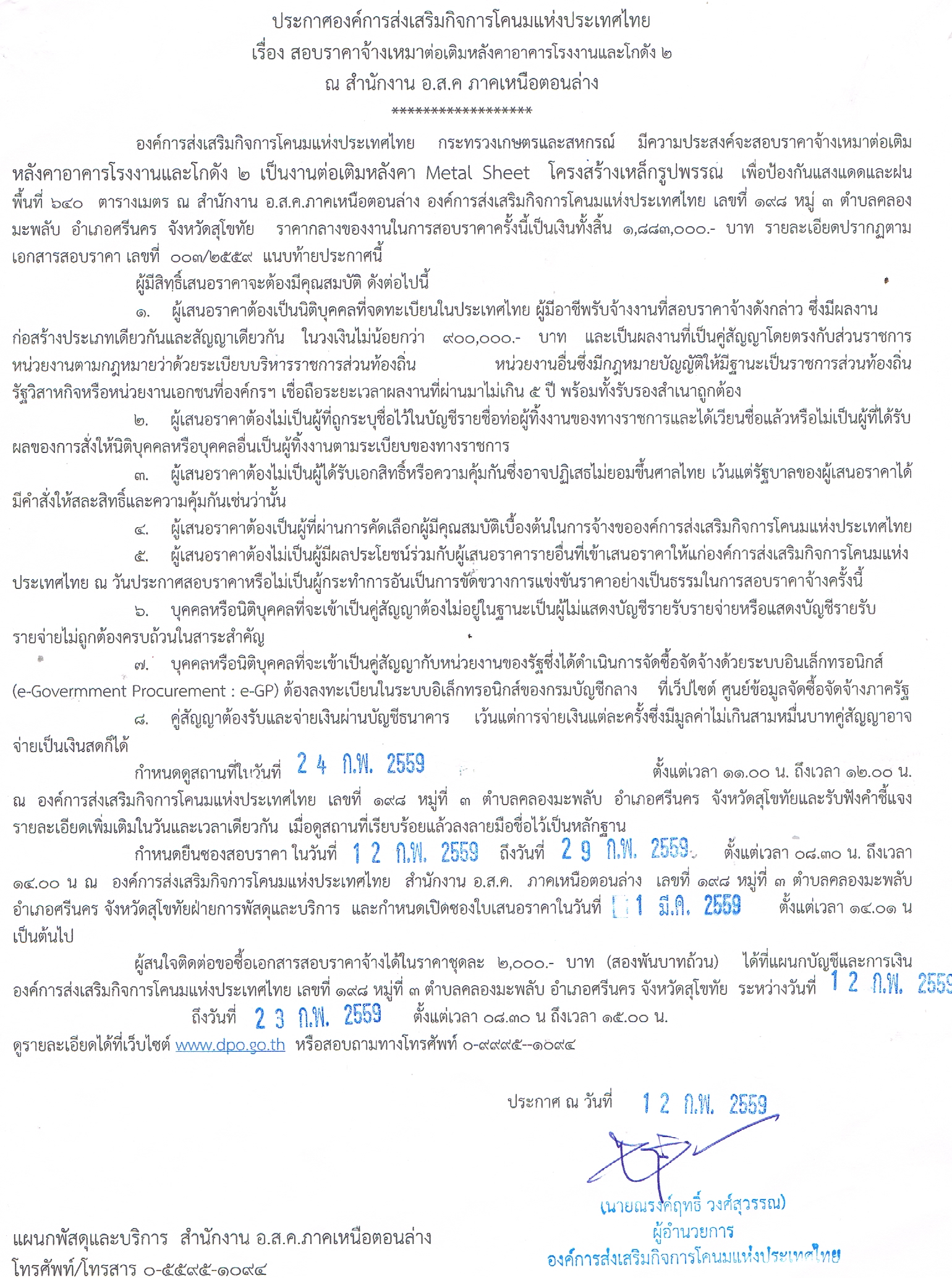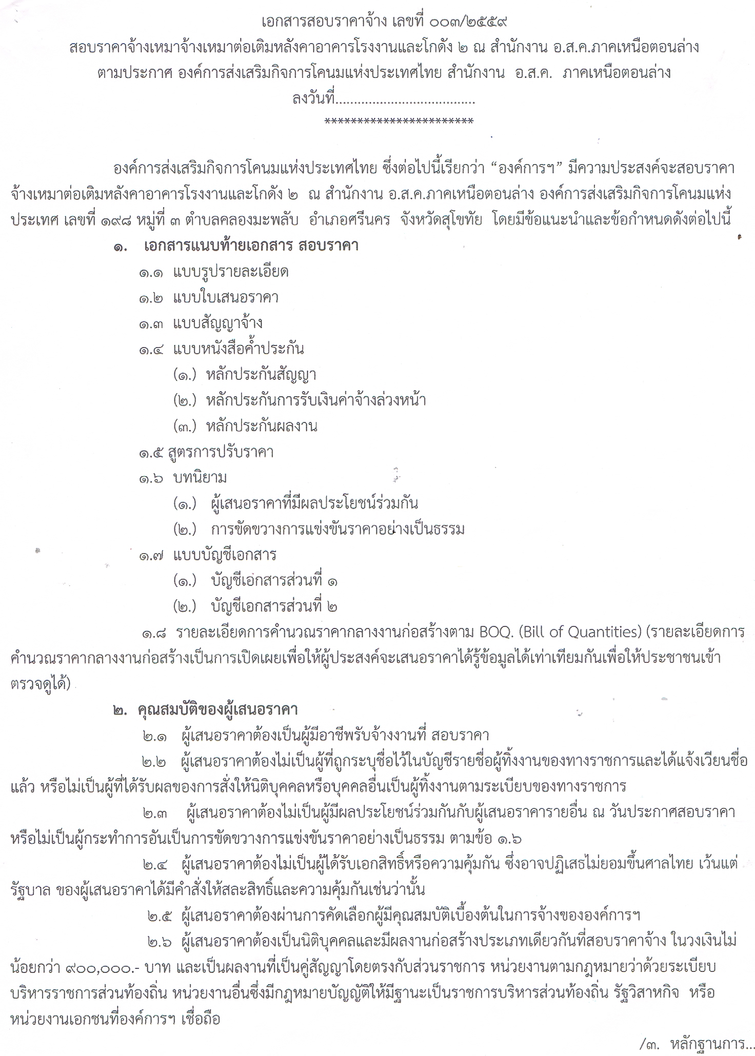 ประกาศผลผู้ชนะการเสนอราคาจ้างก่อสร้างสำนักงาน อ.ส.ค.กรุงเทพฯ ระยะที่ 3 โดยวิธีเฉพาะเจาะจง