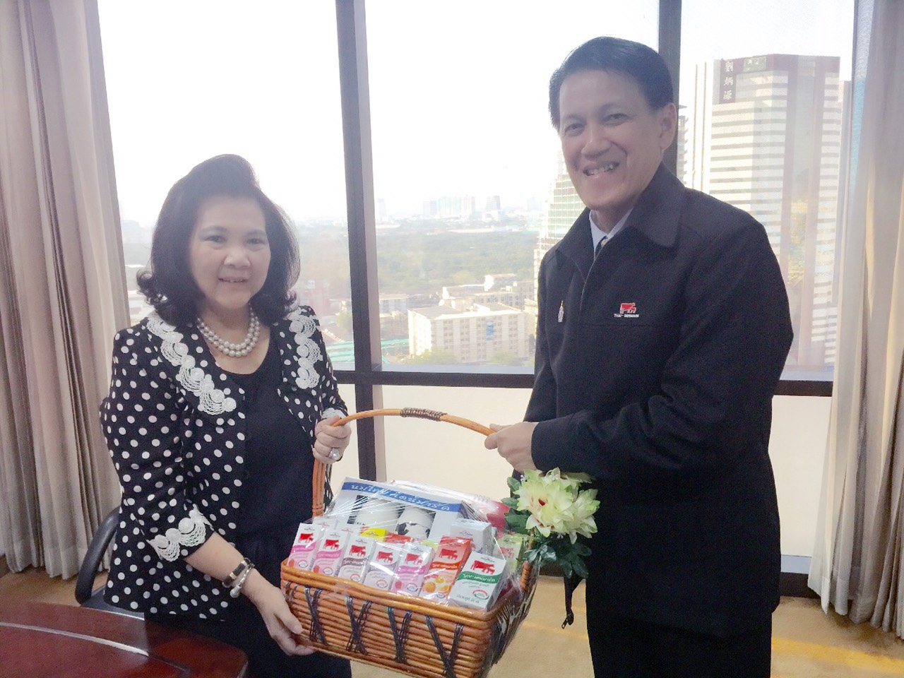 ผู้อำนวยการ อ.ส.ค. ดร.ณรงค์ฤทธิ์ วงศ์สุวรรณ พร้อมผู้บริหาร อสค บุกการบินไทย ร่วมเจรจาหาแนวทางความร่วมมือผลักดันผลิตภัณฑ์นมไทย-เดนมาร์ค สู่ครัวการบินไทย กับท่านรองกรรมการผู้อำนวยการใหญ่หน่วยธุรกิจบริการการบิน คุณอุษรีย์ แสงสิงแก้ว เมื่อวันที่ 5 มกราคม 2559 ที่ผ่านมา