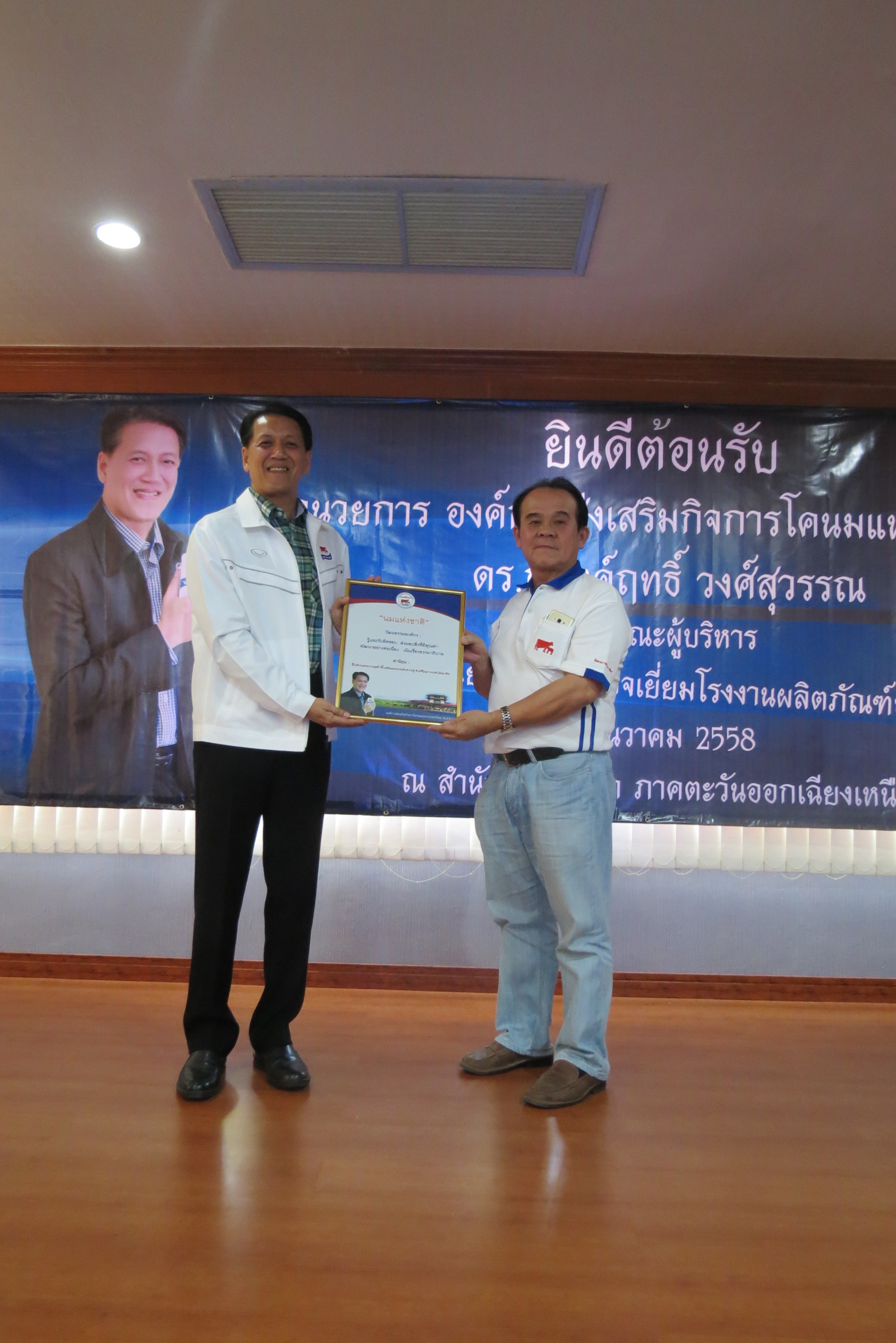 สำนักงาน อ.ส.ค. ภาคตะวันออกเฉียงเหนือ ยินดีต้อนรับ ดร.ณรงค์ฤทธิ์ วงศ์สุวรรณ ผู้อำนวยการ อ.ส.ค. เข้าเยี่ยมชมโรงงานผลิตภัณฑ์นม และมอบนโยบาย การนำองค์กรสู่ “นมแห่งชาติ” ภายในปี 2564 โดยมุ่งเน้นการนำองค์กรด้วยหลักธรรมาภิบาล สร้างมูลค่า และลดต้นทุน ในวันที่ 25 ธันวาคม 2558 ที่ผ่านมา