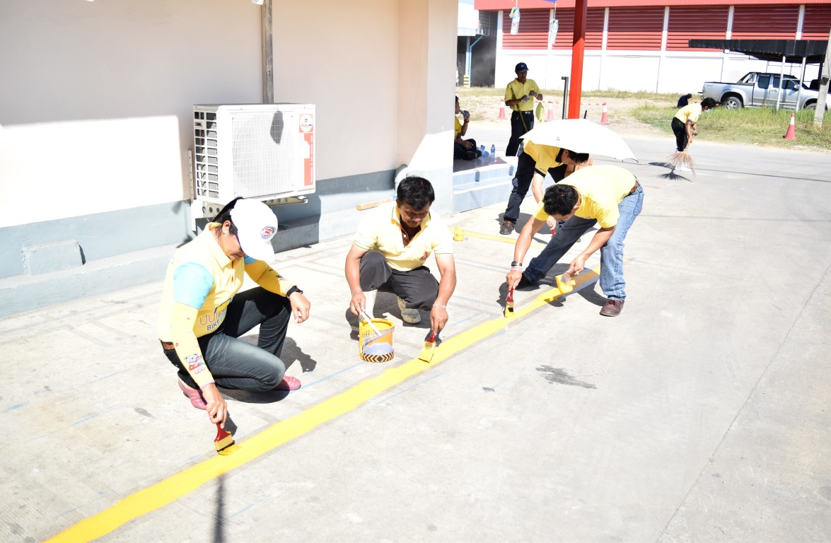 พนักงาน อ.ส.ค.ภาคใต้ ร่วมจัดกิจกรรมวันพ่อถวายแต่พ่อหลวงทำความสะอาดโรงงาน(big cleaning day)กวาดถนน ริททางเท้า ทาสีเส้นจราจร วันที่ 3 ธันวาคม 2558