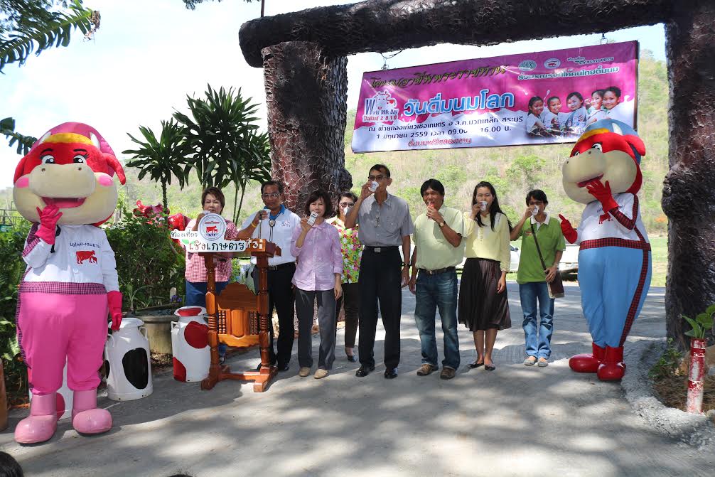 วันที่ 1 มิถุนายน 2559 อ.ส.ค. จัดกิจกรรมวันดื่มนมโลก “ท่องเที่ยว ดื่มนม ชมฟาร์ม ไทย-เดนมาร์ค” ณ อ.ส.ค. มวกเหล็ก จ.สระบุรี เวลาประมาณ 09.30 น. นางนิธิมา ตันตระกูล หัวหน้าฝ่ายตรวจสอบฯ เป็นประธานกล่าวเปิดกิจกรรมดื่มนมโลก “ท่องเที่ยว ดื่มนม ชมฟาร์ม ไทย-เดนมาร์ค” โดยมีนายชวลิต ขาวปลอด หัวหน้าฝ่ายท่องเที่ยวเชิงเกษตรกล่าวรายงานการจัดกิจกรรมฯ พร้อมหัวหน้าฝ่าย พนักงาน-ลูกจ้าง อ.ส.ค. ร่วมกิจกรรม ณ ศูนย์กสิกรรมธรรมชาติ อ.ส.ค. มวกเหล็ก จ.สระบุรี มีคณะนักเรียนเข้าร่วม จำนวน 2 คณะ แบ่งเป็นช่วงเช้าจากโรงเรียนอนุบาลมวกเหล็ก/ช่วงบ่ายจากโรงเรียบนิคมสร้างตนเองเลี้ยงโคนม ภายในกิจกรรมฯ มีการสาธิตการทำปุ๋ยนม/สาธิตการทำไอศกรีมและโยเกิร์ต/ชมสวนสัตว์ของฝ่ายท่องเที่ยวเชิงเกษตร/กิจกรรมป้อนนมลูกโค/กิจกรรมชมการแสดงม้าของลลิตาฟาร์ม และกิจกรรมให้อาหารปลา