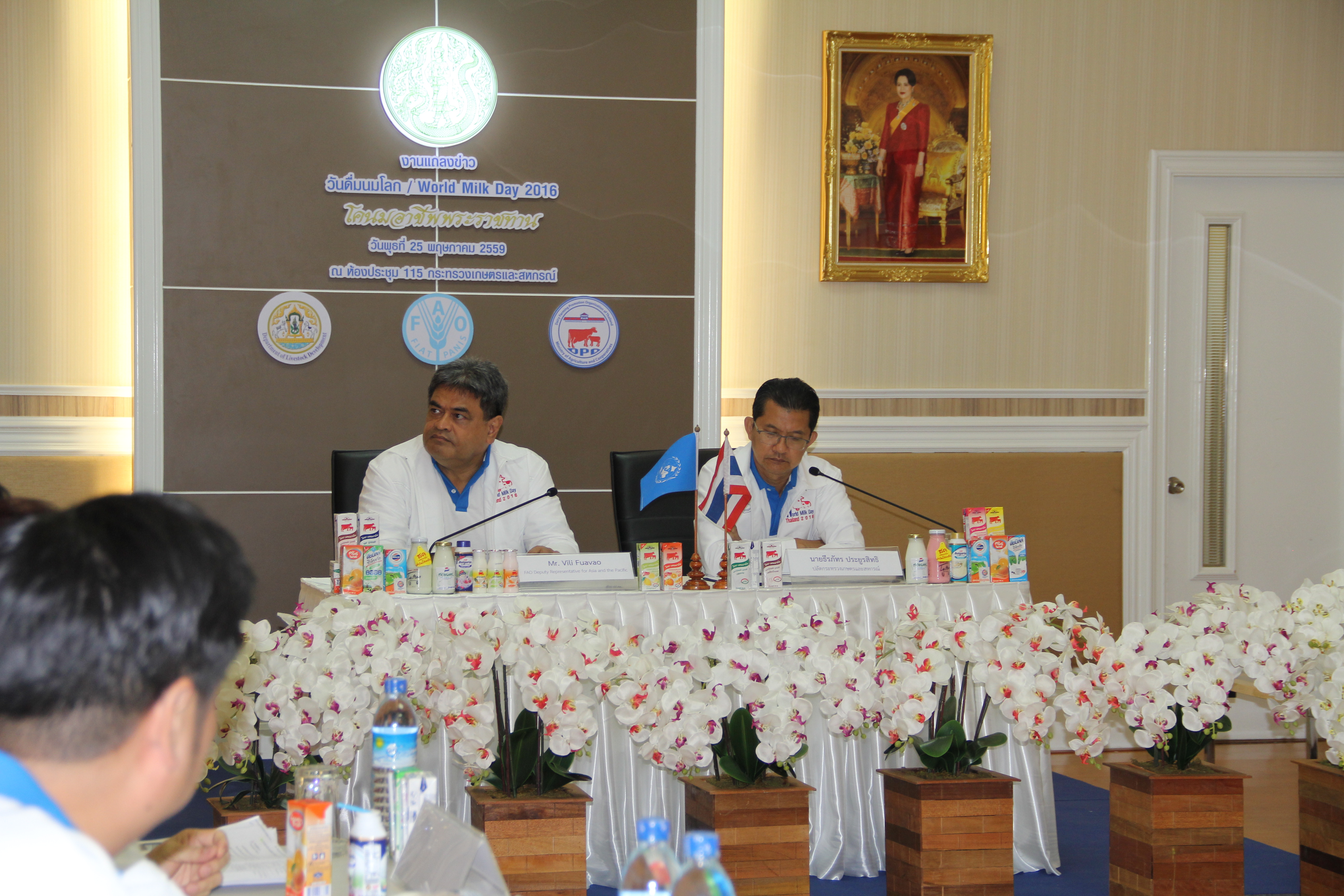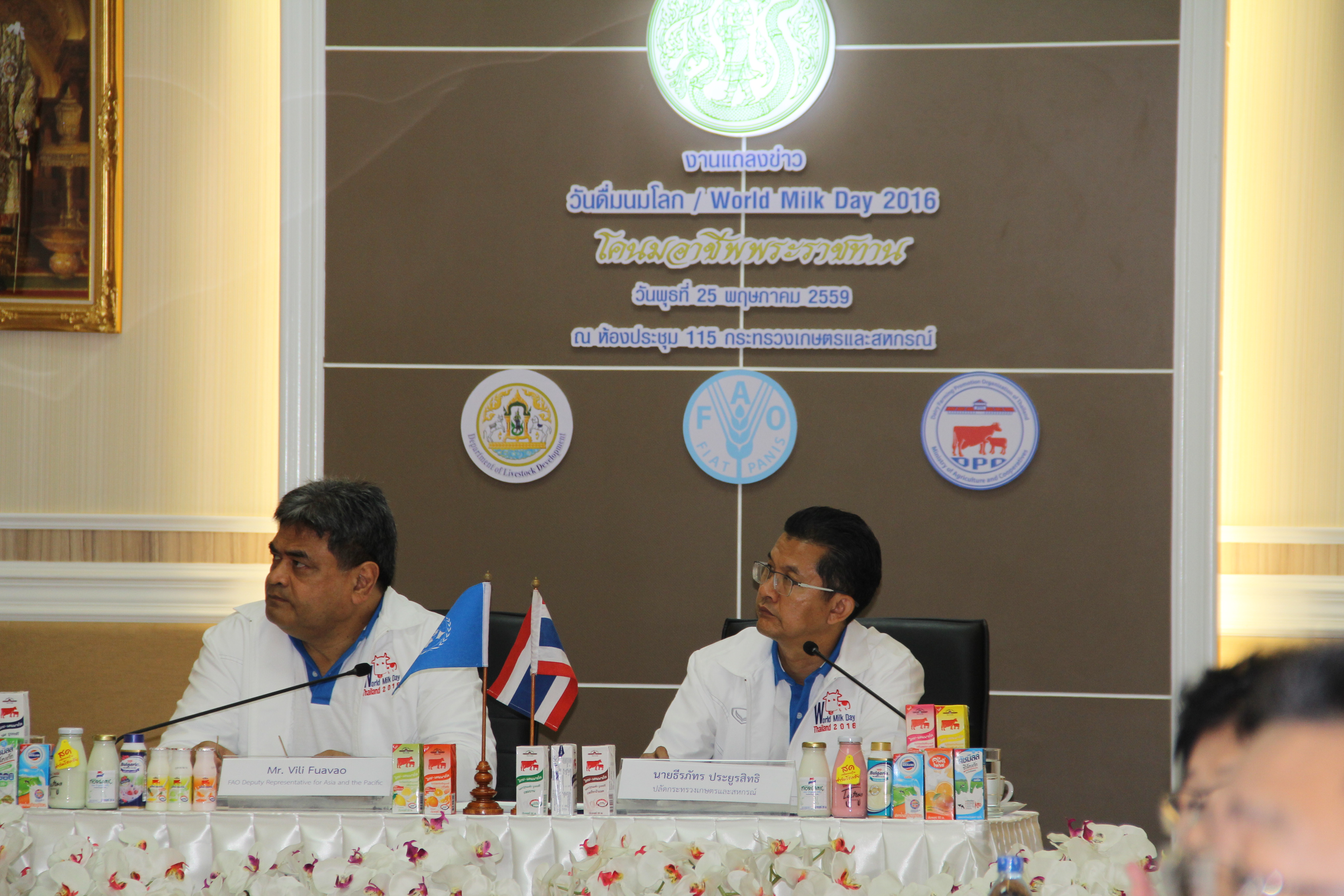 วันที่ 25 พฤษภาคม 2559 อ.ส.ค. จัดงานแถลงข่าว วันดื่มนมโลก 2559 (World Milk Day 2016) ณ ห้องประชุม 115 ชั้น 1 กระทรวงเกษตรและสหกรณ์ โดยนายธีรภัทร ประยูธสิทธิ ปลัดกระทรวงเกษตรและสหกรณ์ เป็นประธานกล่าวแถลงข่าวการจัดงานวันดื่มนมโลกภายใต้แนวคิด “โคนมอาชีพพระราชทาน” เพื่อเฉลิมพระเกียรติพระบาทสมเด็จพระเจ้าอยู่หัวในโอกาสมหามงคลที่พระบามสมเด็จพระเจ้าอยู่หัวได้เสด็จเถลิงถวัลยราชสมบัติ ครบ 70 ปี โดยจะจัดขึ้นในวันที่ 1 มิถุนายน 2559 ณ ลาน Parc Paragon ชั้น M ศูนย์การค้าสยามพารากอน พิธีเปิดจะเริ่มอย่างเป็นทางการในเวลา 16.00 น. หลังจากนั้น Mr.Vili Fuavao รองผู้แทนเอฟเอโอประจำภูมิภาคเอเชียและแปซิฟิกได้กล่าวสุนทรพจน์เกี่ยวกับความสำคัญของวันดื่มนมโลก ซึ่งการจัดงานในครั้งนี้มีสื่อมวลชน ผู้บริหารหน่วยงานในสังกัดกระทรวงเกษตรและสหกรณ์ ผู้บริหาร อ.ส.ค. และหน่วยงานที่เกี่ยวข้องเข้าร่วมงานก่อนเสร็จสิ้นแถลงข่าว ดร.ณรงค์ฤทธิ์ วงศ์สุวรรณ ผู้อำนวยการ อ.ส.ค. มอบของที่ระลึกแก่ประธานการแถลงข่าว รวมทั้ง Mr.Vili Fuavao และประธานแถลงข่าวมอบของที่ระลึกให้กับนายไพโรจน์ เฮงแสงชัย รองอธิบดีกรมปศุสัตว์ ต่อจากนั้นทุกคนที่มาร่วมงานได้ถ่ายภาพร่วมกัน