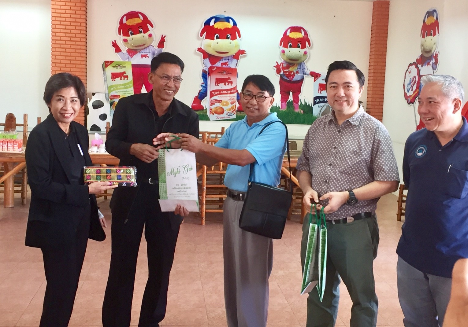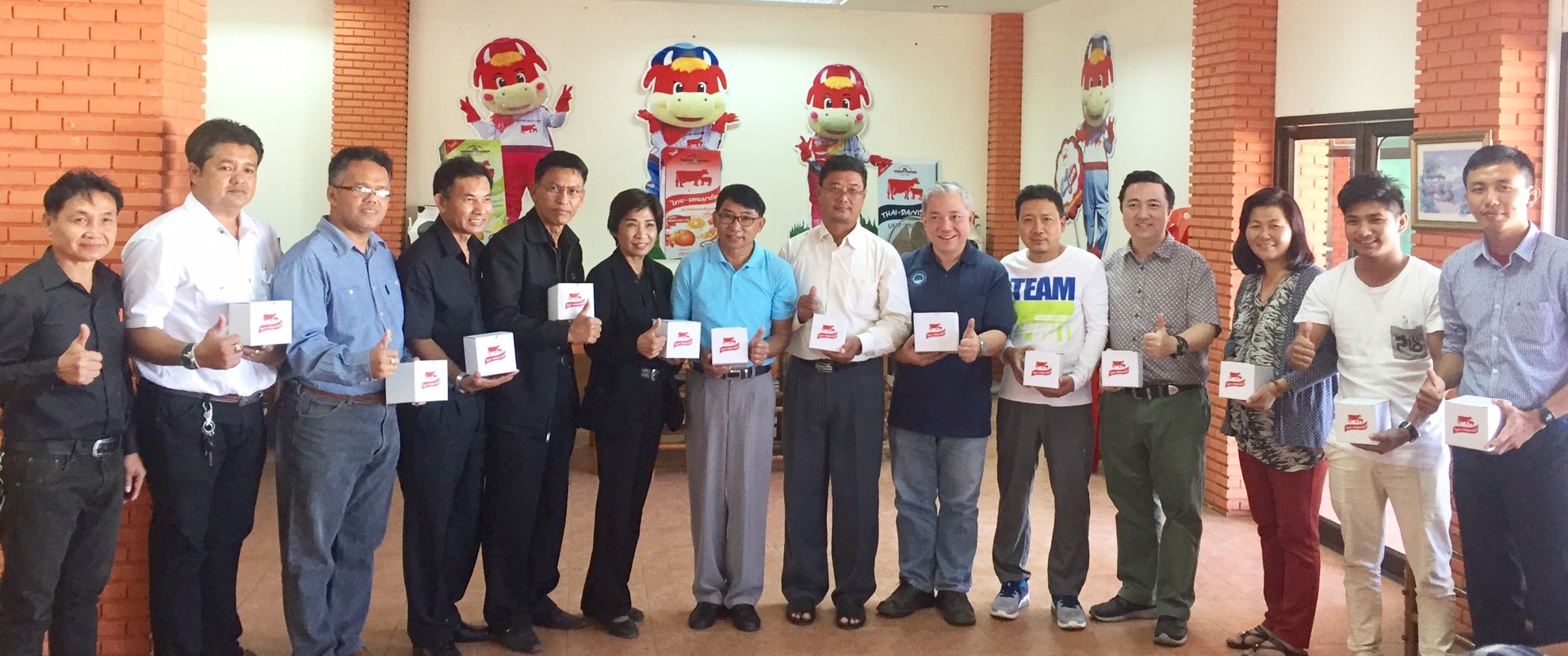 วันที่ 1 ธันวาคม 2559 นางภรภัทร จินายน หัวหน้าฝ่ายอำนวยการ พร้อมด้วย นายวุฒิชัย จั่นเพ็ชร หัวหน้าฝ่ายวิจัยและพัฒนาการเลี้ยงโคนม และเจ้าหน้าที่ อ.ส.ค. ให้การต้อนรับทีมงานจากบริษัททองโกรว์ เอ็นเตอร์ไพส์ จำกัด ซึ่งเป็นผู้ดำเนินกิจการจำหน่ายและเเปรรูปสัตว์และสัตว์น้ำ ได้นำคณะเกษตรกรชาวเมียนมาร์ และชาวไทย จำนวน 13 ท่าน มาศึกษาดูงานทางด้านการรีดนมวัวและวิธีการเก็บรักษา และการแปรรูปผลิตภัณฑ์จากน้ำนมดิบ โดยมีเจ้าหน้าที่จากฝ่ายวิจัยเเละพัฒนาการเลี้ยงโคนม ให้การบรรยายเเละให้คำปรึกษา ณ ห้องประชุม ฝ่ายท่องเที่ยวเชิงเกษตร อ.ส.ค. อ.มวกเหล็ก จ. สระบุรี