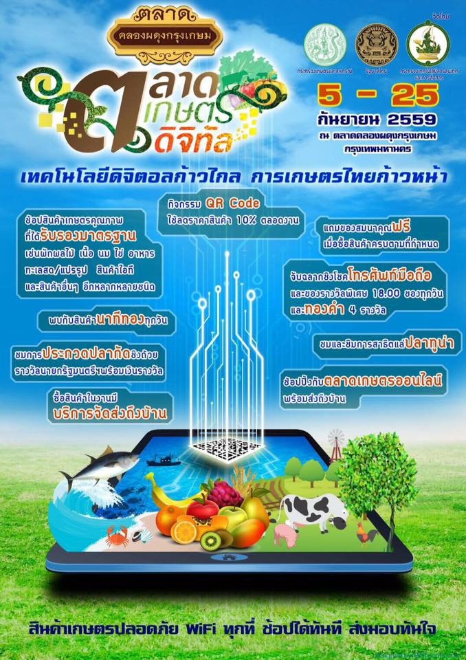 ขอเชิญผู้สนใจเข้าร่วมงานเทคโนโลยี ดิจิตอลก้าวไกล การเกษตรไทยก้าวหน้า วันที่ 5- 25 กันยายน 2559 ณ ตลาดคลองผดุงกรุงเกษม กรุงเทพมหานคร