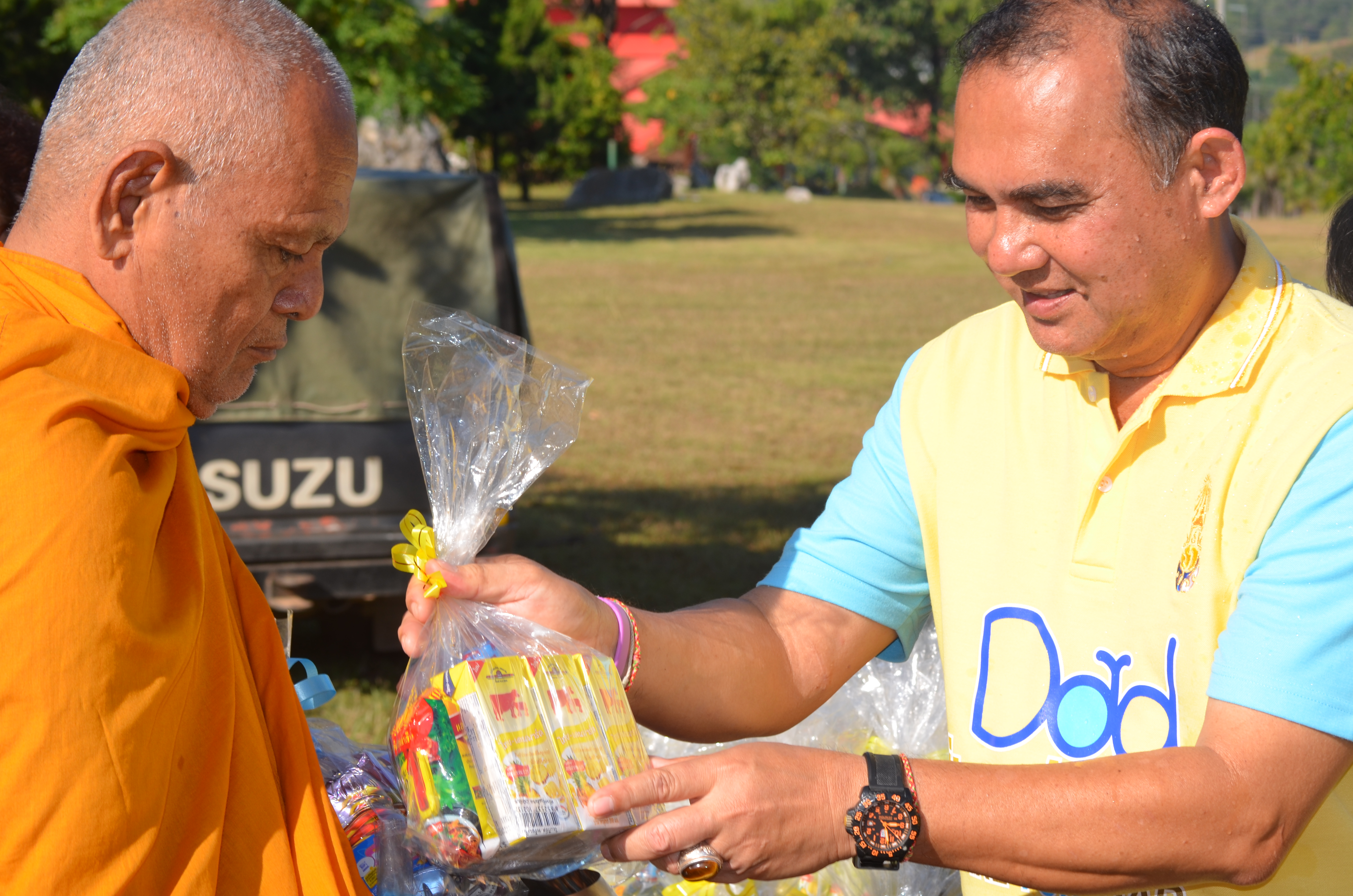องค์การส่งเสริมกิจการโคนมแห่งประเทศไทย (อ.ส.ค.) ร่วมกับ สำนักงานเครือข่ายองค์กรงดเหล้า (สคล.) จัดงานประเพณีตักบาตรนมสดและธรรมะในฟาร์ม
